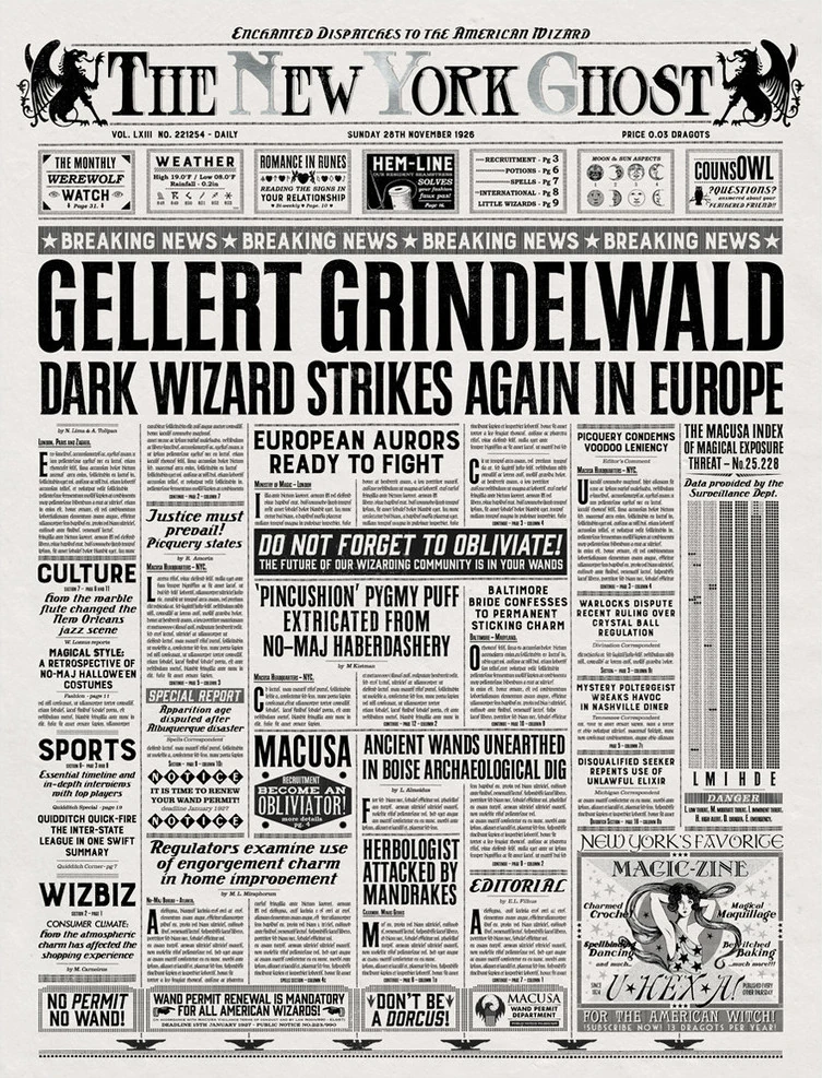 - Fantastic Beasts and Where to Find Them – újságkivágás